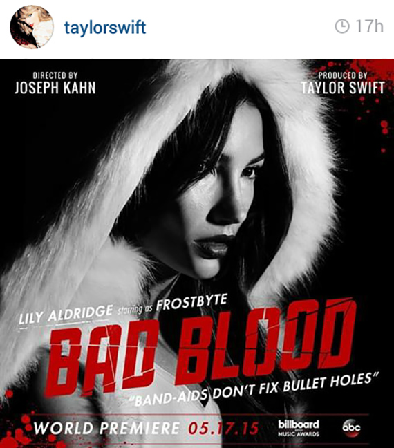 LILY ALDRIDGE CAST IN TAYLOR SWIFT’S “BAD BLOOD” MUSIC VIDEO
