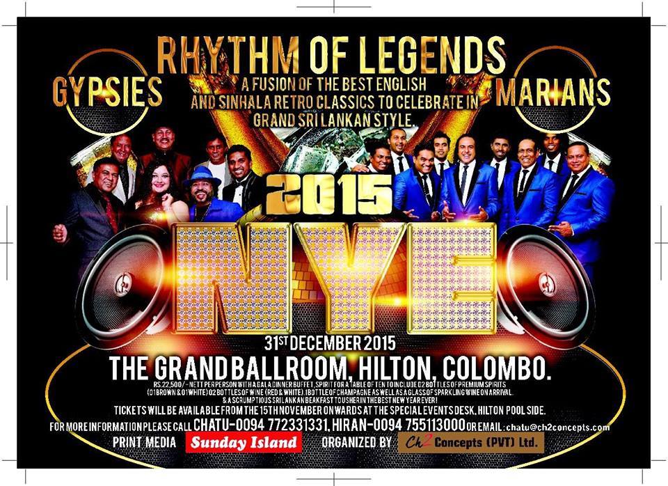 First time in Sri Lanka’s musical history, two legendary groups (Marians and Gypsies) are going together on one stage. The 31st night ‘New Year’s Eve’ dinner dance at the Grand Ballroom Hilton Colombo