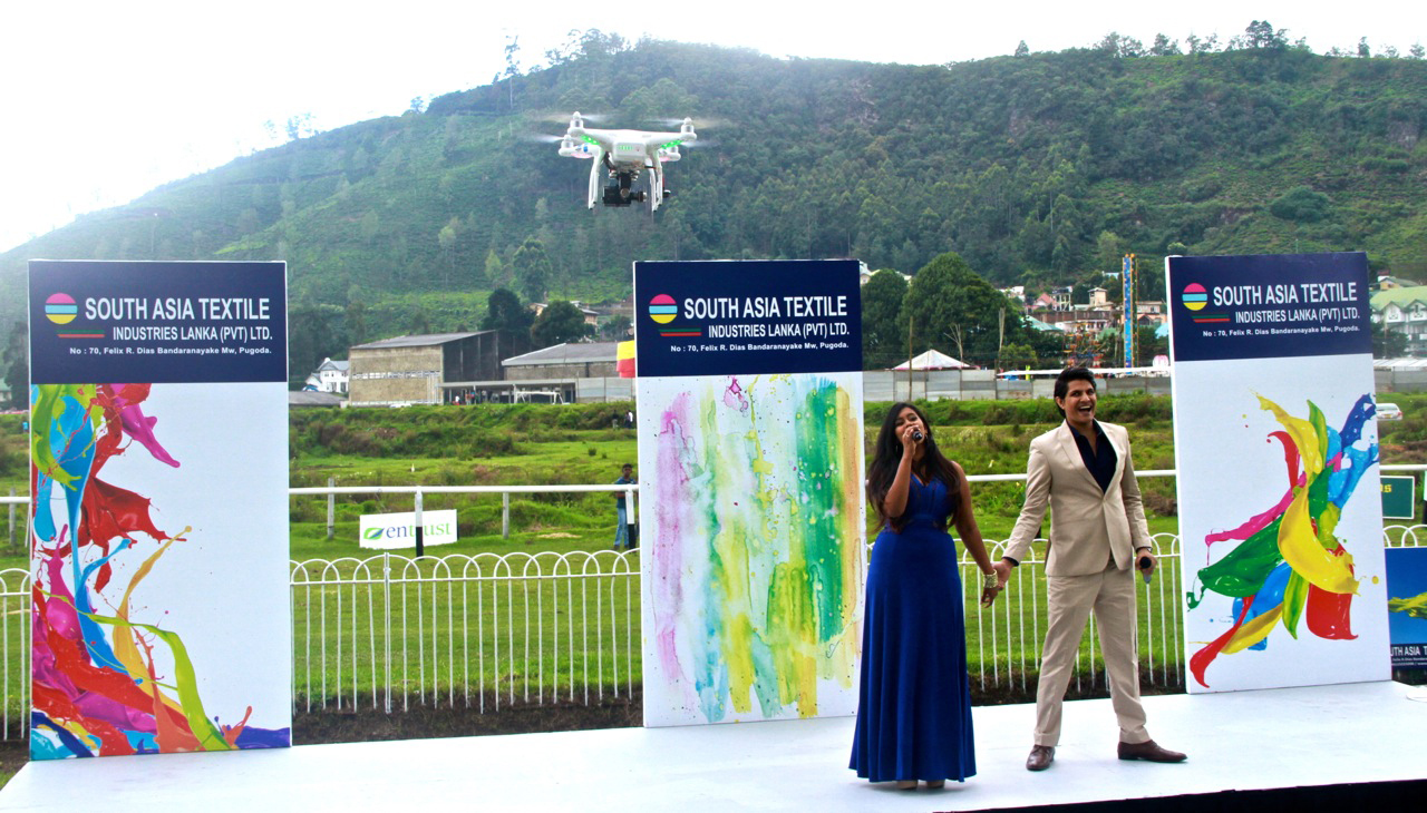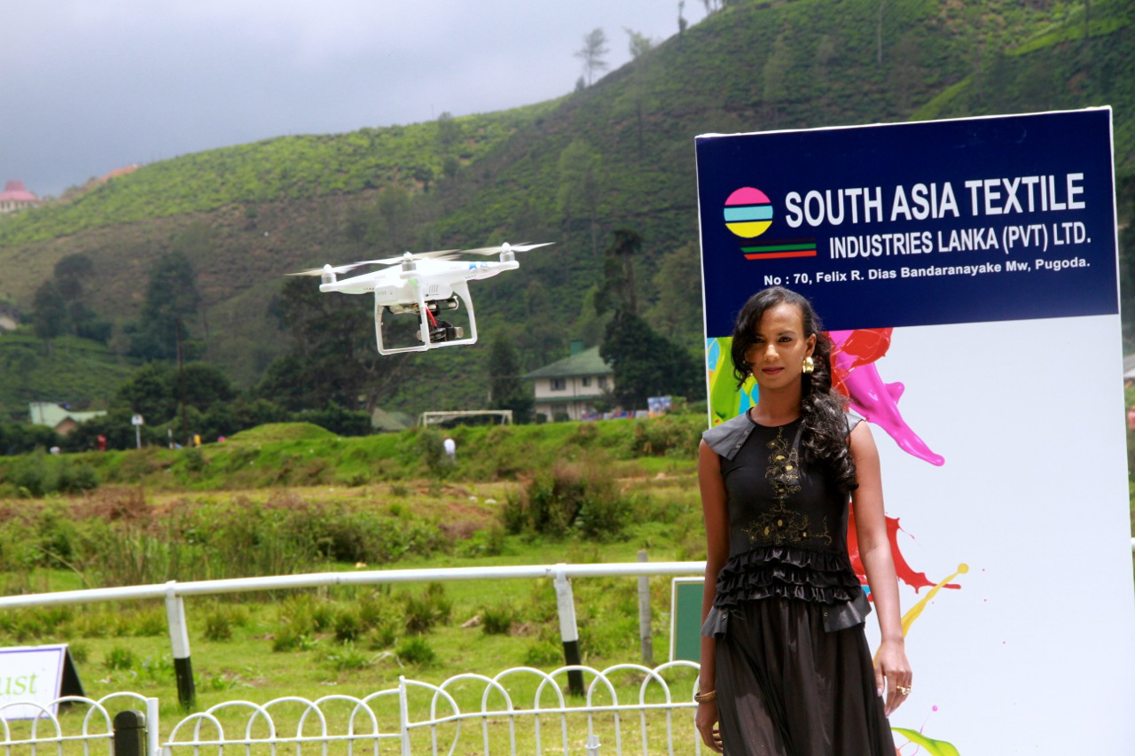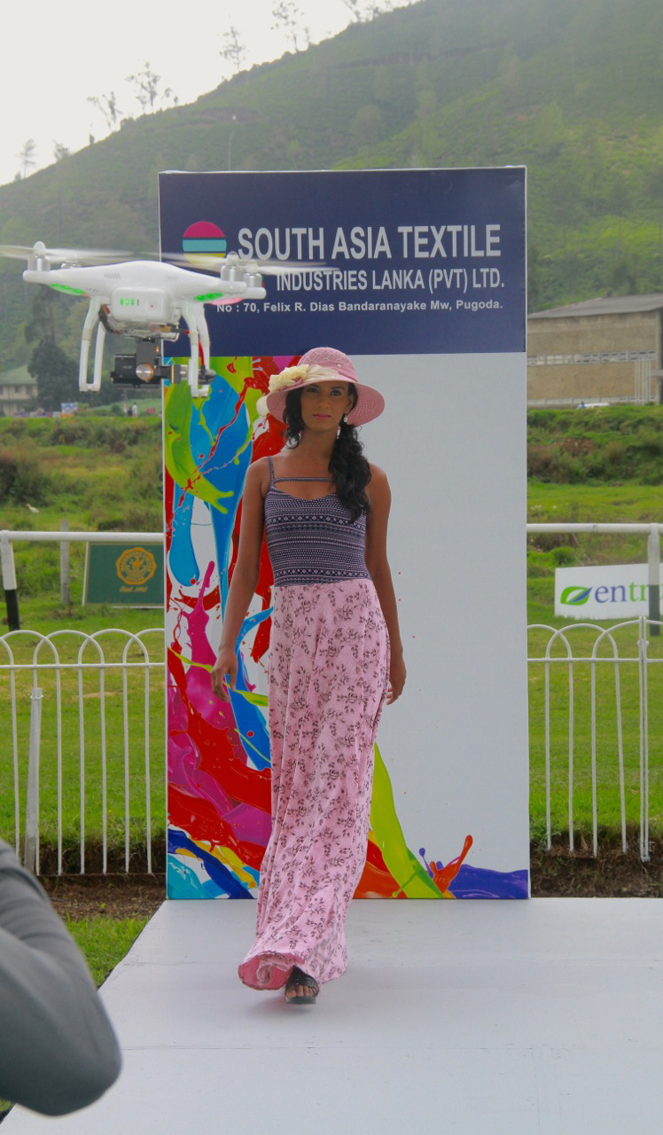 Here we see the drone at the South Asia Textile Industries Lanka Fashion Show, which was held during the breaks between races. As can be seen, the models are focused on their walk down the runway, all the while attempting to maintain their professional composure even when the drone sometimes gets too close for comfort.