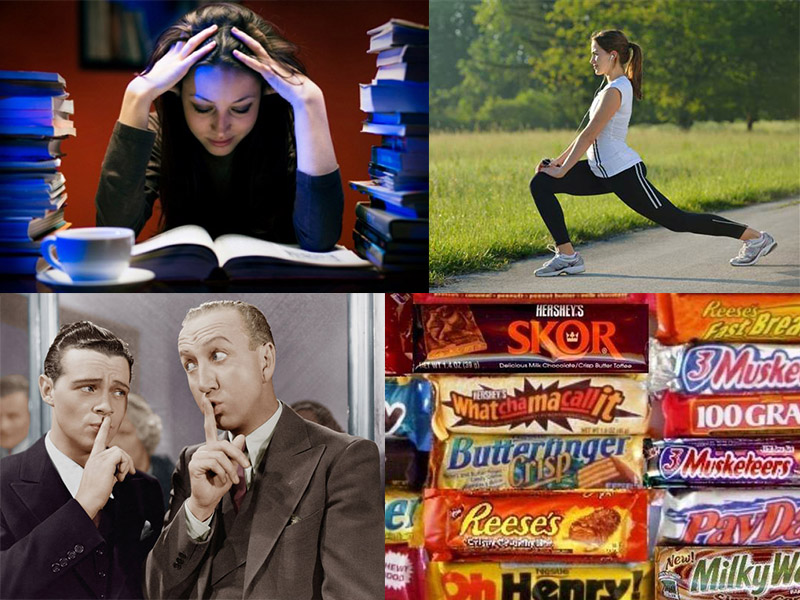 Exercise before you study (Exercise has both long and short-term effects on cognition. When you exercise, your body interprets the physical stress as you fighting or fleeing an enemy and activates your sympathetic nervous system. In response, your brain is flooded with extra blood, rich in oxygen and nutrients, to make what it thinks could be life-saving decisions. It’s even been demonstrated that exercise can lead to neurogenesis, or the creation of new brain cells–a process previously thought impossible. In addition, a brain structure called the hippocampus is stimulated during exercise. Research has shown that the hippocampus is important for reasoning and memory. Besides short-term boosts in cognition, regular exercise can actually slow down age-related shrinkage of the hippocampus. Another benefit of exercise is its role as a stress-reducer. Stress can be a huge hindrance to focus and memory formation (thanks to the hormone cortisol), and unfortunately, college can be extremely stressful. Luckily, exercise is a cheap and easy way to curb some of the stress associated with day-to-day life, ensuring you can focus on learning what you need to for your classes.)