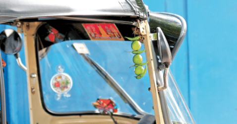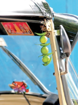 Ah, this is a tale relating to our dear friend, aswaha katawaha. When you buy a brand new vehicle, it is believed to keep four lime fruits near the four tires of your vehicle and to drive over them. This is to avoid aswaha katawaha from bringing adverse effects or bad luck to you and your brand new buy.