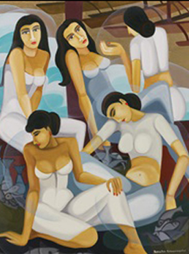 Some of his famous works include Untitled (Bathers) which depicts women in the midst of their bathing ritual, Untitled (Butterflies) and Untitled (Women in a Lush Landscape).