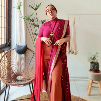 In their bid to personalise the saree, the younger generation has taken to accessorising and draping to reflect their distinct stylistic expressions – from pairing it with button downs, to belting their waists, to adding dainty body chains, to even using the pallu itself as a top. They have pushed past tradition, truly making it their own.