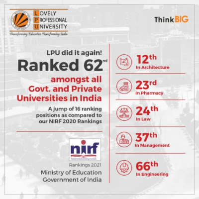 LPU has been ranked in top Universities in India by NIRF and globally by Times Higher Education rankings 2021. LPU is recognised by the University Grant Commission (UGC), Sri Lanka and also holds membership in the Association of Commonwealth Universities and International Association of Universities. It offers world recognised education covering all kinds of courses at all levels to ensure that the students are recognised across the globe.