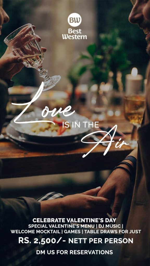 Spend Valentine’s Day with the love of your life at the Best Western with their Special Valentine menu for LKR 2500 per person, inclusive of DJ music, all kinds of games and table draws. DM them for reservations.