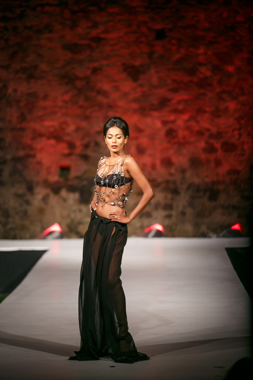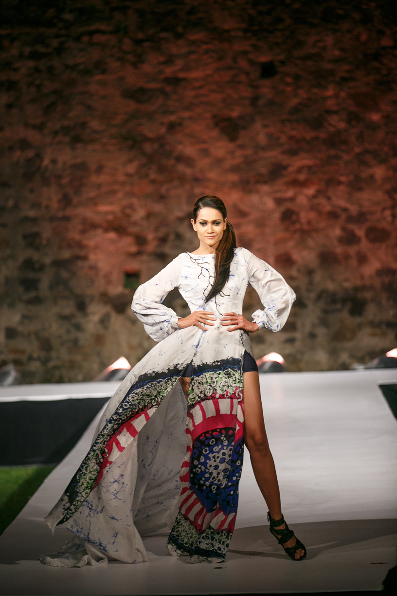 Unveiled on the finale day of Colombo Fashion Week- Resort 2015, “The Escape” Collection by INDI is inspired by these unique journeys and the gorgeous colours, distinct shapes and rich experiences of the environment around. The models showcased 20 original INDI design pieces, made using local batik craft as the main printing technique, embellished outfits with the brands signature detailing of embroidery, with beads and coloured pearl work for definition.