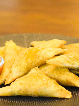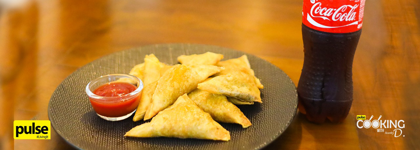 - Using a mixture of all-purpose flour and water, form triangles using pastry sheets. Add filling and deep fry till golden brown.