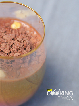 - Pour into cups and freeze. Garnish with grated chocolate and hazelnut.