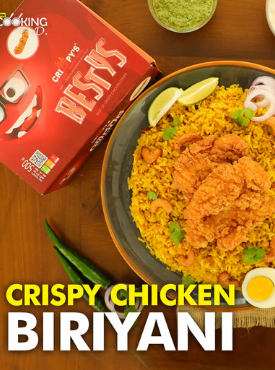 Fry the chicken until they’re cooked well and golden brown. Remove from the pan once done and serve them with the biriyani.