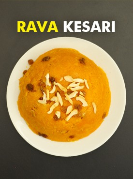 Add water after a while and mix well. Add kesari powder, salt, cardamom powder, sugar, ghee, cashews and raisins and mix well. Make sure to mix each ingredient separately after adding them into the pan.