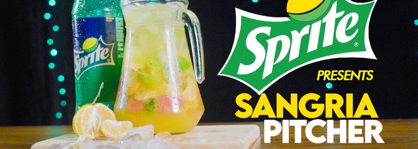 Finally, top-up the pitcher with orange juice, ice cubes and sprite.