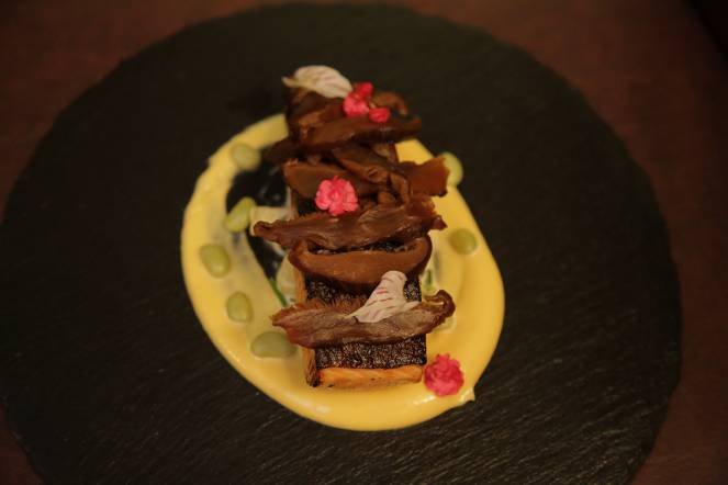 This dish consists of Yuzu Potato Salad, Edamame Beans, Wakame Salad, Shitaki Ragu and Miso. The Salmon Steak on its own will taste very bland however it is meant to be consumed with the salty purée. Just like the previous dishes, one component cannot do without the other so make sure you mix up everything with every bite you take!