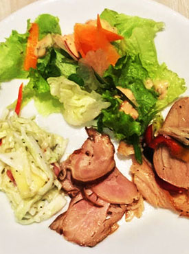 Salad: Mixed Lettuce Salad, Chicken Bacon Salad, Pineapple and Cabbage Salad and Smoked Chicken and Mango Salad