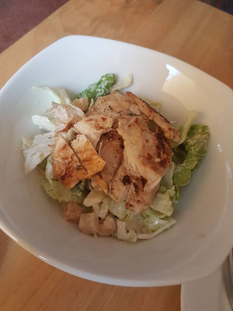 You could opt to get the salad with smoked salmon too but we were a little skeptic, so we stuck to the chicken instead. The salad was a big bowl of lettuce, doused in dressing and topped with grilled chicken and croutons.