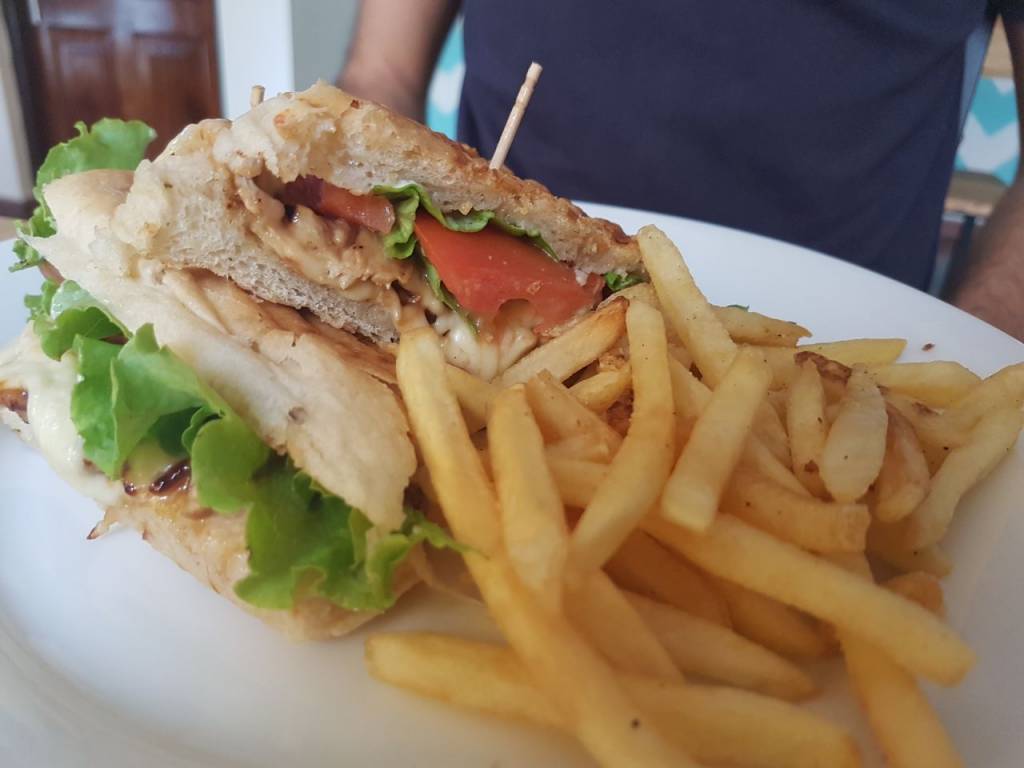 Served with a side of fries, the Panini came stuffed with tomato, lettuce, grilled chicken and mozzarella in between two slightly tough slices of bread.  The fries still had a bit of skin on them so you could see they were in-house and freshly made. They were fried to perfection and generous in portion.