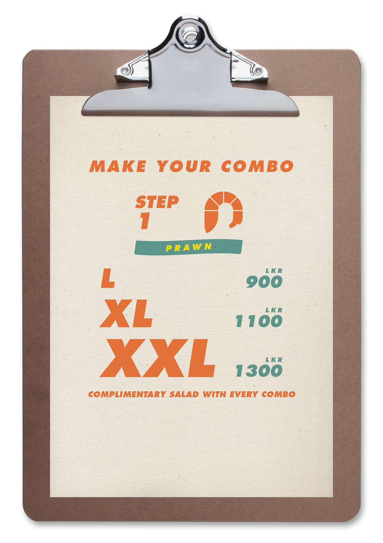 Before getting down into what we ate, let me explain how the process of choosing your meal works. It’s a 3-step process. Step 1: You choose the size of the prawns you want in your meal. They sell the large prawns at LKR 990, XL prawn size at LKR 1190 and XXL at LKR 1390. You can then process to choose how you want your prawn prepped. They have 6 styles on the menu, out of which we tried 3. Next is the carb you want as a side. Additionally, meal box comes with a salad on the side too.
