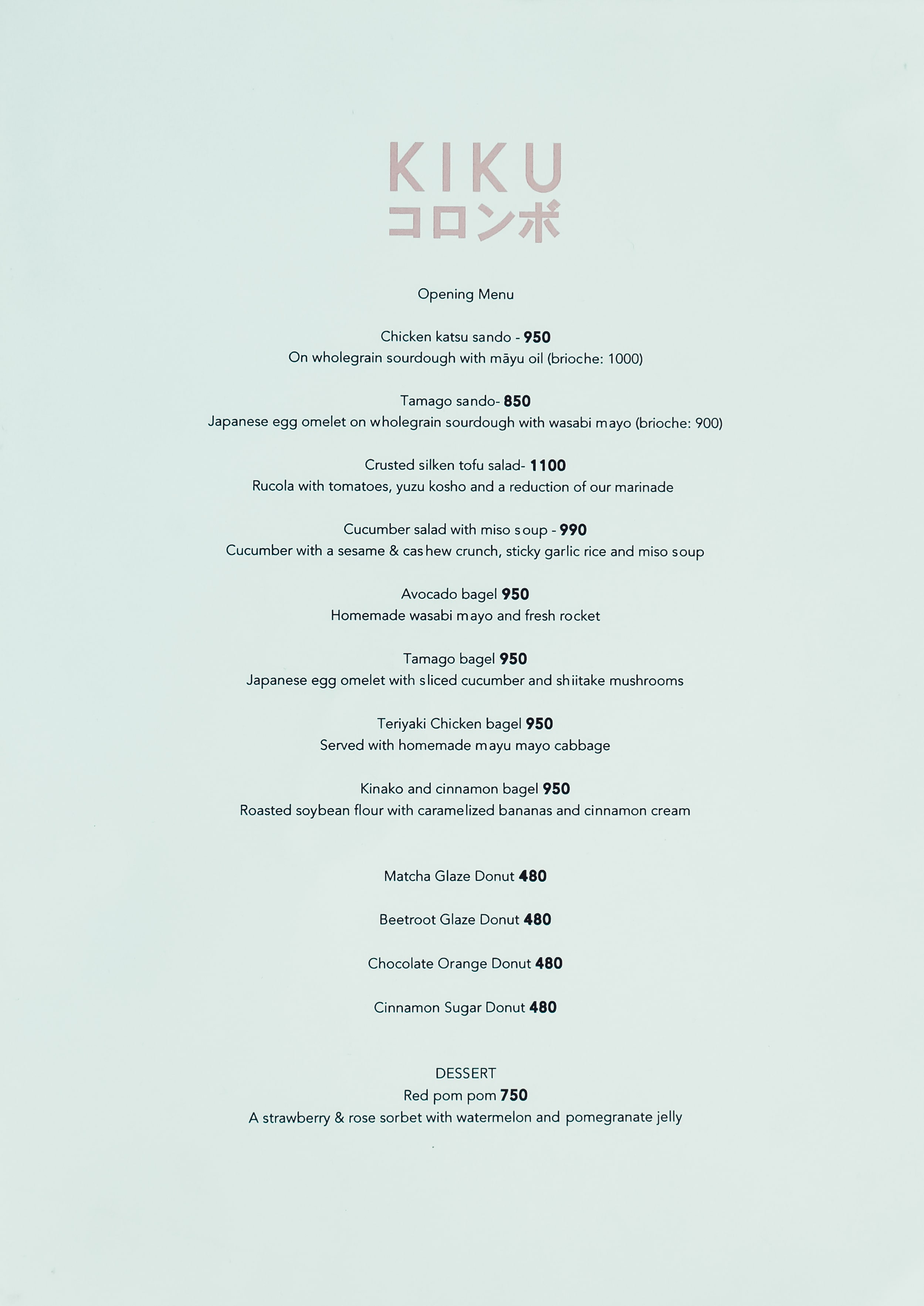 So, our experience at KIKU was amazing and their staff are very accommodating and friendly. The vibe they have going on is laid back yet professional and the atmosphere is lovely. They are very eco-friendly as well, which we noticed by their use of bamboo straws for their beverages and we recommend KIKU Colombo for get-togethers, meetings and even dates. Also, the pictured menu above is simply their opening menu and KIKU has more up their sleeves for the near future, which we are very excited for!