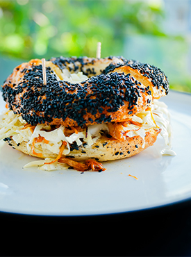 On to the sweet option, yet again we hoped the bagel this time around was softer but it sadly was not. To anyone who is looking for a mildly sweet and healthy dish, this should be right up your alley because this bagel was packed with caramelized bananas and topped off with roasted soybean flour. What gave this main that extra oomph though, was the side of cinnamon cream. YUMS.