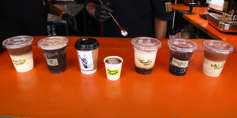 This drink is basically a tropical vacation in a cup. The cola shapes its taste, while the blue curaçao and strawberry swirl adds fun and flair. This kind of tastes like the pink bubblegum we all used to chew back in the day. It’s fruity, fizzy and pretty, all in one. We could not really taste the coffee in this but otherwise it delivers!