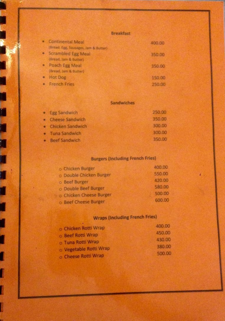 Their beverages range from fruit juices to milkshakes to hot beverages and also the usual cool drinks. Be sure to check what is available, because when we went the milkshakes and some fruit juices were not available.