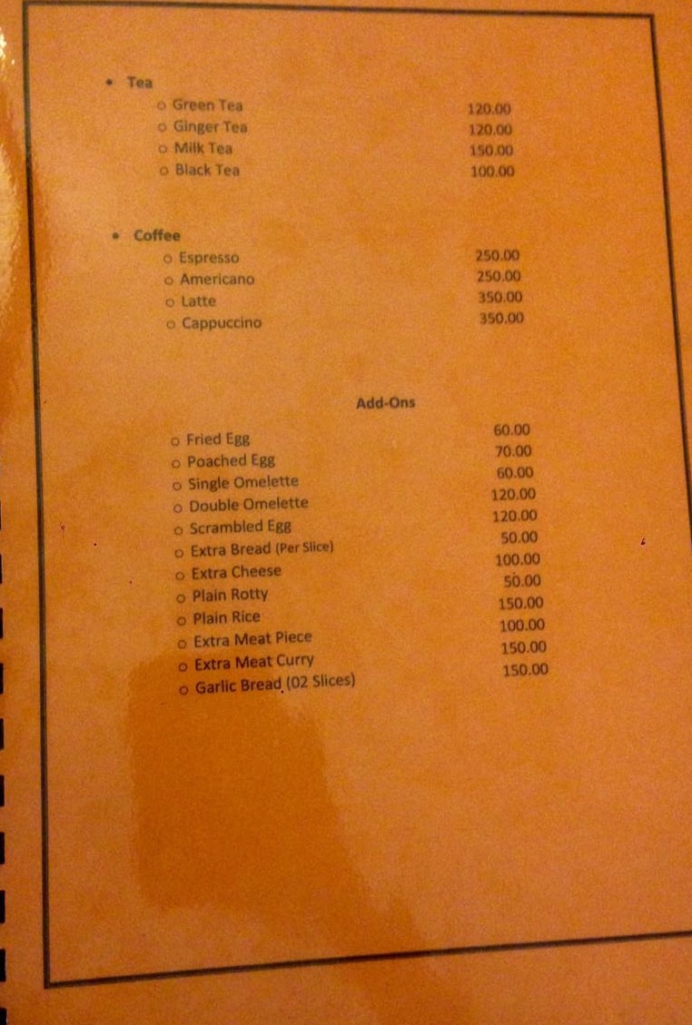 With an open kitchen, La Veranda brings something unique to Colombo’s café spread. Their menu is extensive with the mains and they offer an array of sandwiches, wraps, burgers, noodles, pasta, spaghetti, rice, and even kotthu. We visited La Veranda for dinner, so unfortunately we could not try their breakfast menu.