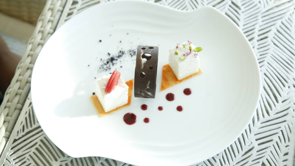 Moya is quite extra with the dishes they serve, all of which match up to top notch standards! The presentation on this dish was as good as the previous dishes and the flavors blew our minds away! Topped with edible flowers and a chocolate-filled, raspberry macaroon, the coconut parfait tasted slightly sweet and very coco-nutty. A very light dessert to finish off the heavy meal we had before us.