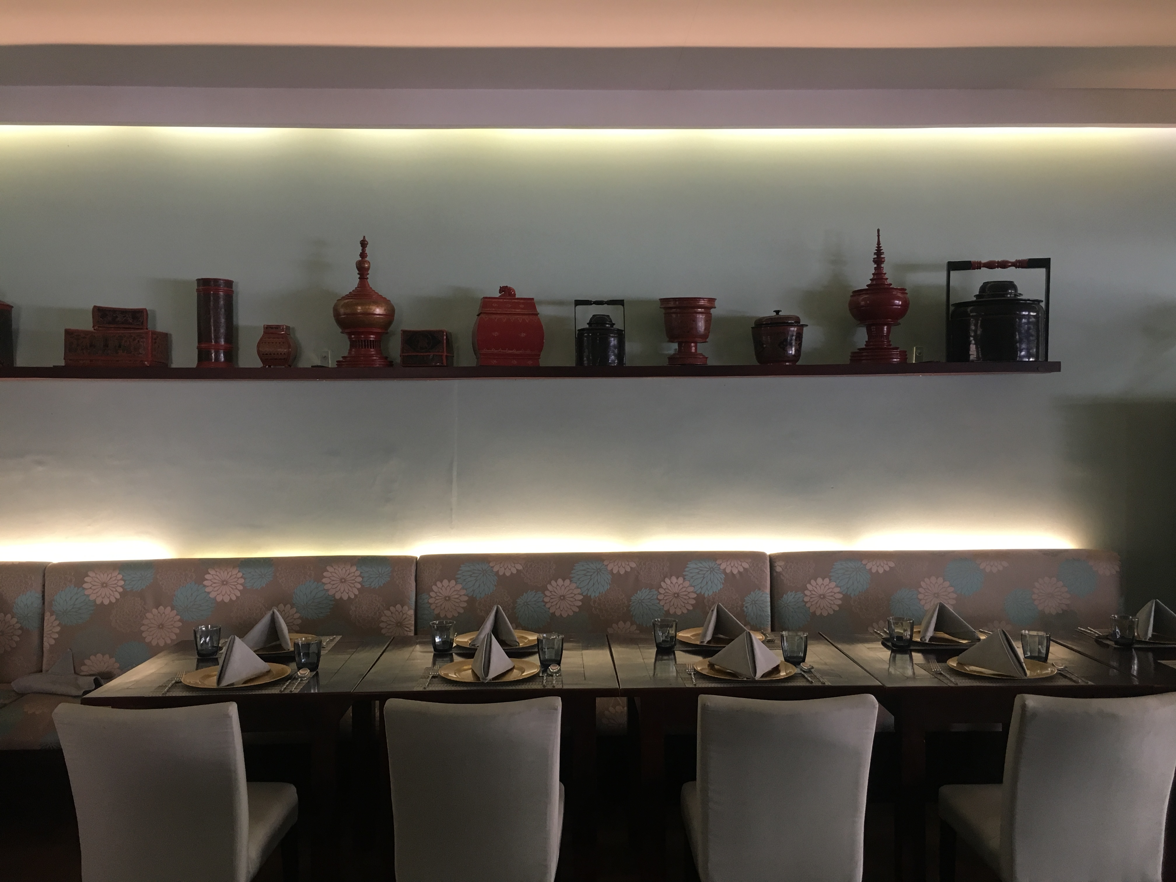 The aesthetic of Thai Cuisine has always been very interesting to me. They’ve paired a teal and grey interior with a touch of antique gold. The art and the accessories are beautiful and I’ve always had so much appreciation for the culture and the story that these pieces try to narrate.