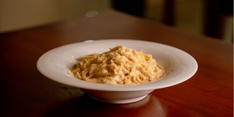Calling it cheesy is an understatement. Not only is it smothered in a creamy and silky cheesy sauce, but it is also dusted with cheese. The cheesy aftertaste is complemented well by the bits of salty bacon, preventing such a rich dish from becoming too overpowering.