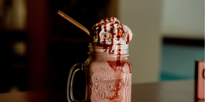 The drink looks every bit as delightfully decadent as it tastes. Topped with whipped cream and drizzled with rich chocolate sauce, this shake is so good, diabetes might be a fair trade.
