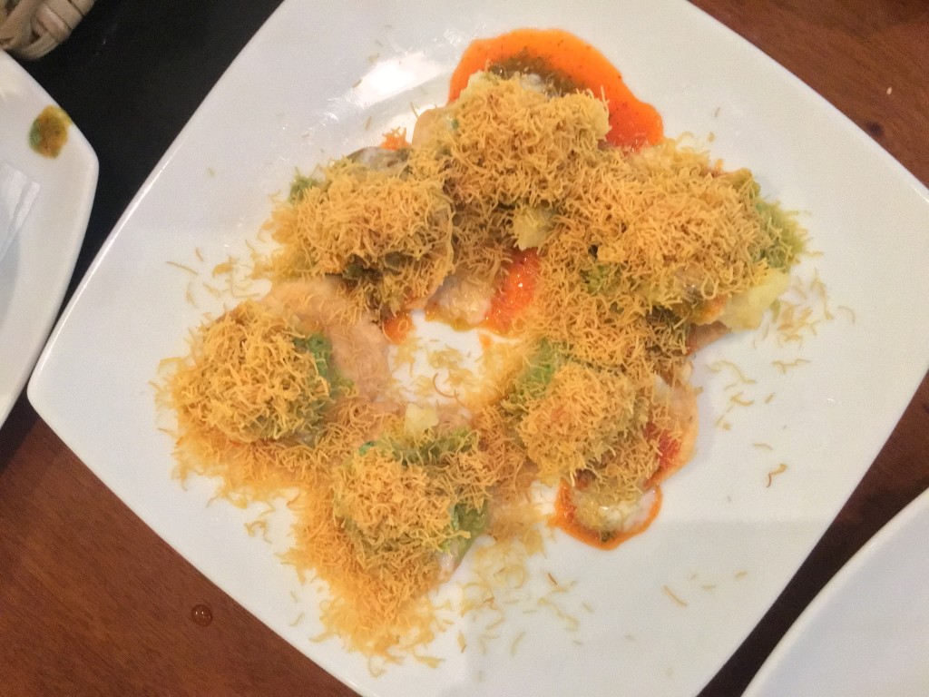 In case you’re wondering, Jaljeera is Indian spiced lemonade. We went to Mango Tree on a Friday night and were feeling quite adventurous. We wanted to try everything on the menu that we thought were out of the ordinary. Hence the attempt to sip down the Jaljeera, which we failed to do, because it tasted horrible. It was a watery vegetable broth, the kind your mom would force you to drink when you’re sick and need your vitamins. The Jaljeera was topped with a mint leaf and what looked like fried white peas or crunchy ball.