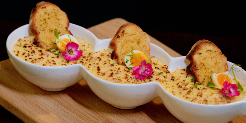 A standout from start to finish. Creamy, generously cheesy baked crab topped with quail egg and served with garlic toast. It arrives in three small dishes, making it ideal for sharing, and the presentation is as appealing as the flavour. Rich without feeling heavy, and easily one of the best dishes on the table.