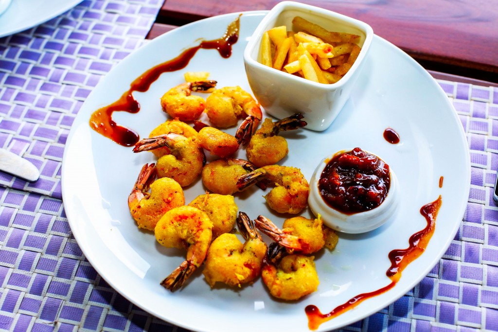 Mains: Batter fried prawns served with sweet chili sauce – Rs. 1180, Chicken Mexican Wrap – Rs. 870, Herb and peanut stuffed grilled chicken, served with pot roasted jus, baked vegetables and saffron rice – Rs. 980