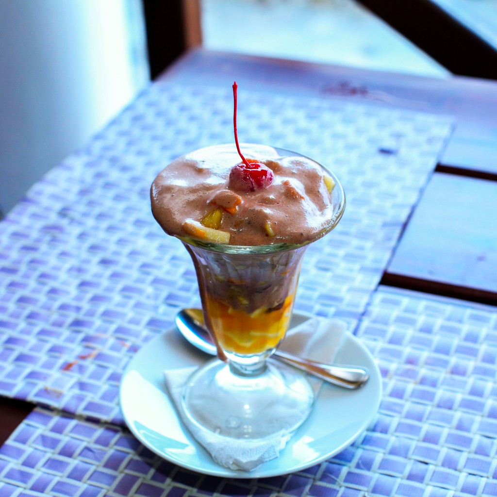 For lack of another option, we ordered a fruit salad as a last resort. It was a typical Sri Lankan combination of mushy pineapple, papaya, apples and raisins with melted ice cream and a red cherry for garnish. The chocolate ice cream was basically a milkshake by now, already running down the side of our dish and the flavors of the dessert were mediocre at best.