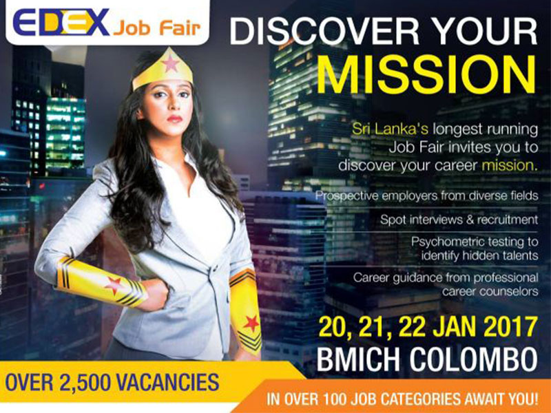 Sri Lanka’s largest education exhibition and Job Fair – EDEX Expo will be held on 20-22 January 2017 at BMICH Colombo, and on 27-28 January 2017 at Kandy City Centre (KCC), Kandy. The twin expos will be the 29th and 30th in the continuing series.