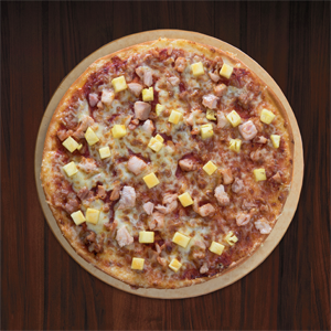 The  tropical Hawaiian pizza looked like it just came after chilling on the beach. It was topped with an abundance of pineapple pieces and some shards of cubes chicken. If you share the same sentiments as the President of Ireland’s “no pineapple in your pizza” ban, then this isn’t your cup of tea. If you are one, you are missing out on a great pizza. The juicy pineapple and the scrumptious smoked chicken work so well together. It’s a gourmet pizza with a thin, light crust baked with chicken ham and pineapple blanketed by heaps of stringy mozzarella cheese.
